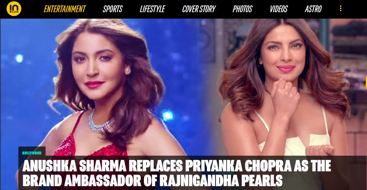 House of DS Group is making some brand changes and among the changes is the face behind the brand. As per the latest development, Anushka Sharma has replaced Priyanka Chopra as the brand ambassador of Rajnigandha Pearls. For years, PeeCee has been the face of Rajnigandha Pearls from the House of DS Group, but their latest advertising campaign features Anushka. The ad has Anushka helping two fellow models who suffer a wardrobe malfunction while walking the ramp, highlighting the message of displaying goodness.
