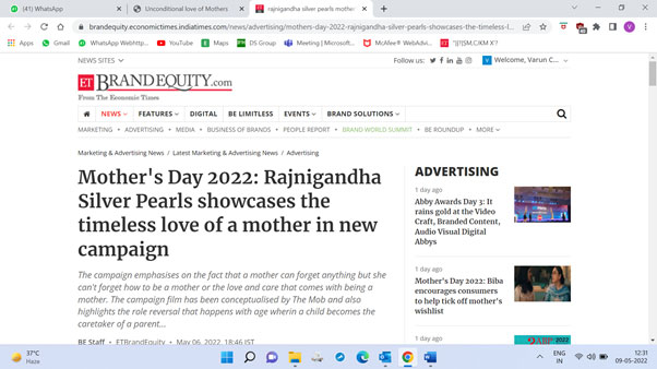 Rajnigandha Silver Pearls, has launched a new campaign titled 'Forgotten' on International Mother's day to celebrate a story of timeless care and love and an extraordinary relationship of a mother and child. Rajnigandha Silver Pearls pays tribute to Motherhood and Maternal Bonds