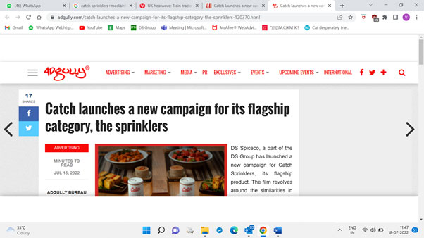 Commenting on the campaign, Mr. Sandeep Ghosh, Business Head, DS Spiceco Pvt Ltd, said, “The flagship product of Catch, the sprinklers have enjoyed leadership in the category since its launch in the year 1987. The new commercial will further consolidate Catch’s leadership position in the table top category, which has expanded over the years and has a variety of Salts, Pepper & Blends today. A taste enhancer for every palate indeed.